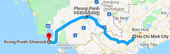 We left Saigon on a high note. We climbed up several flights of stairs in an old apartment building tucked down an alley, to emerge on the roof, where there’s a lovely restaurant called The Secret Garden. Homestyle food, some of the most delicious we’ve had. Then we caught a bus across the border to Cambodia.